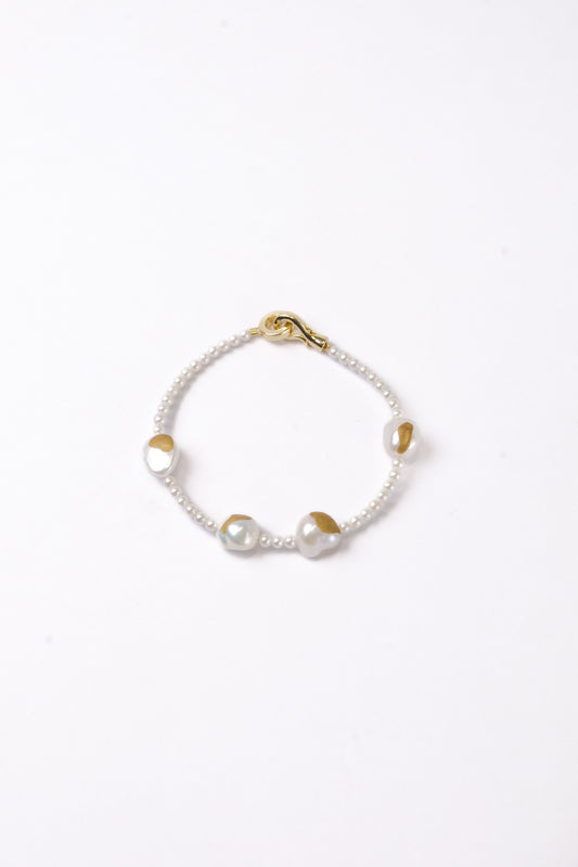 Gold Lacquer Baroque Pearls and Millet beads Bracelet